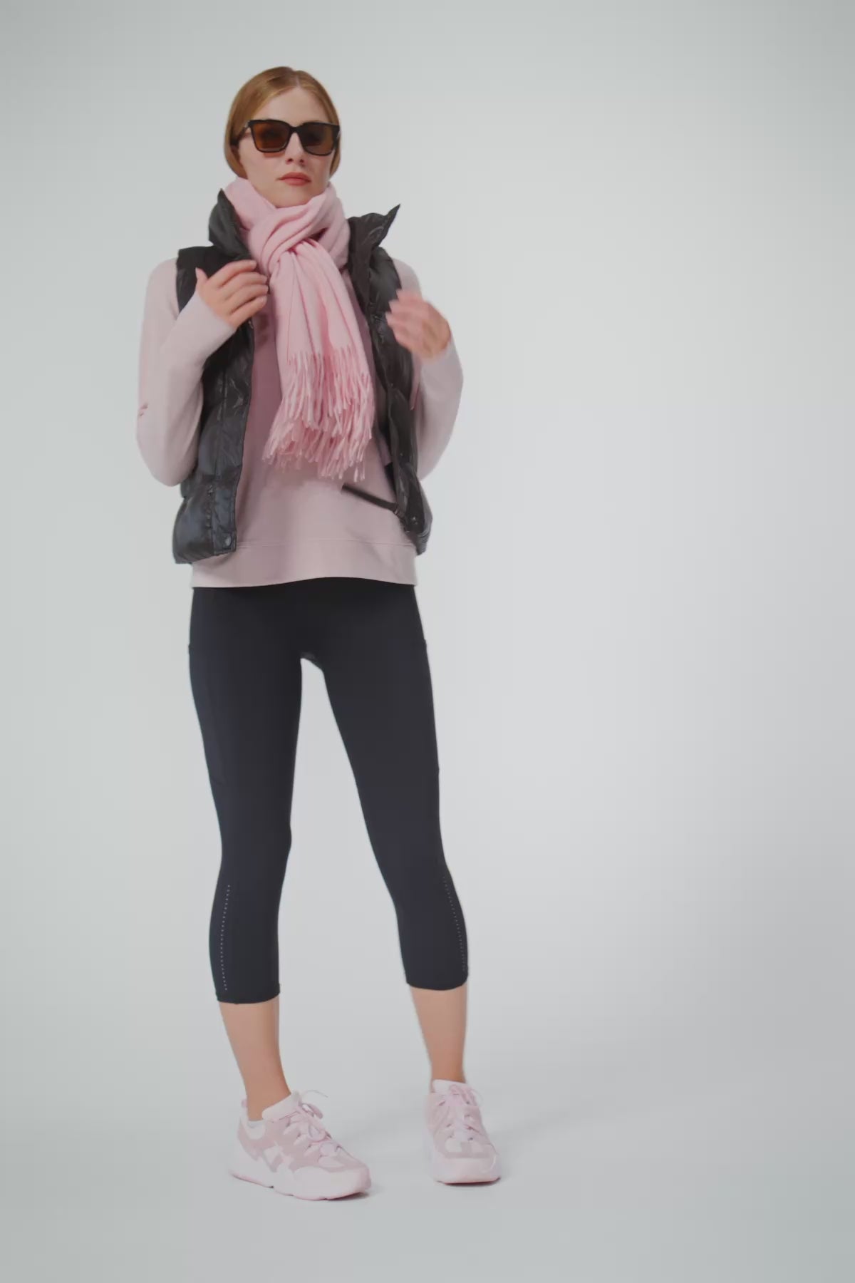 Step into elegant comfort with this short sleeveless puffer featuring a high mock collar and glossy accents. Its quilted design, full zip closure, and snap placket strike the perfect balance between style and protection. Perfect for active days or city strolls, it keeps you warm while feeling light.